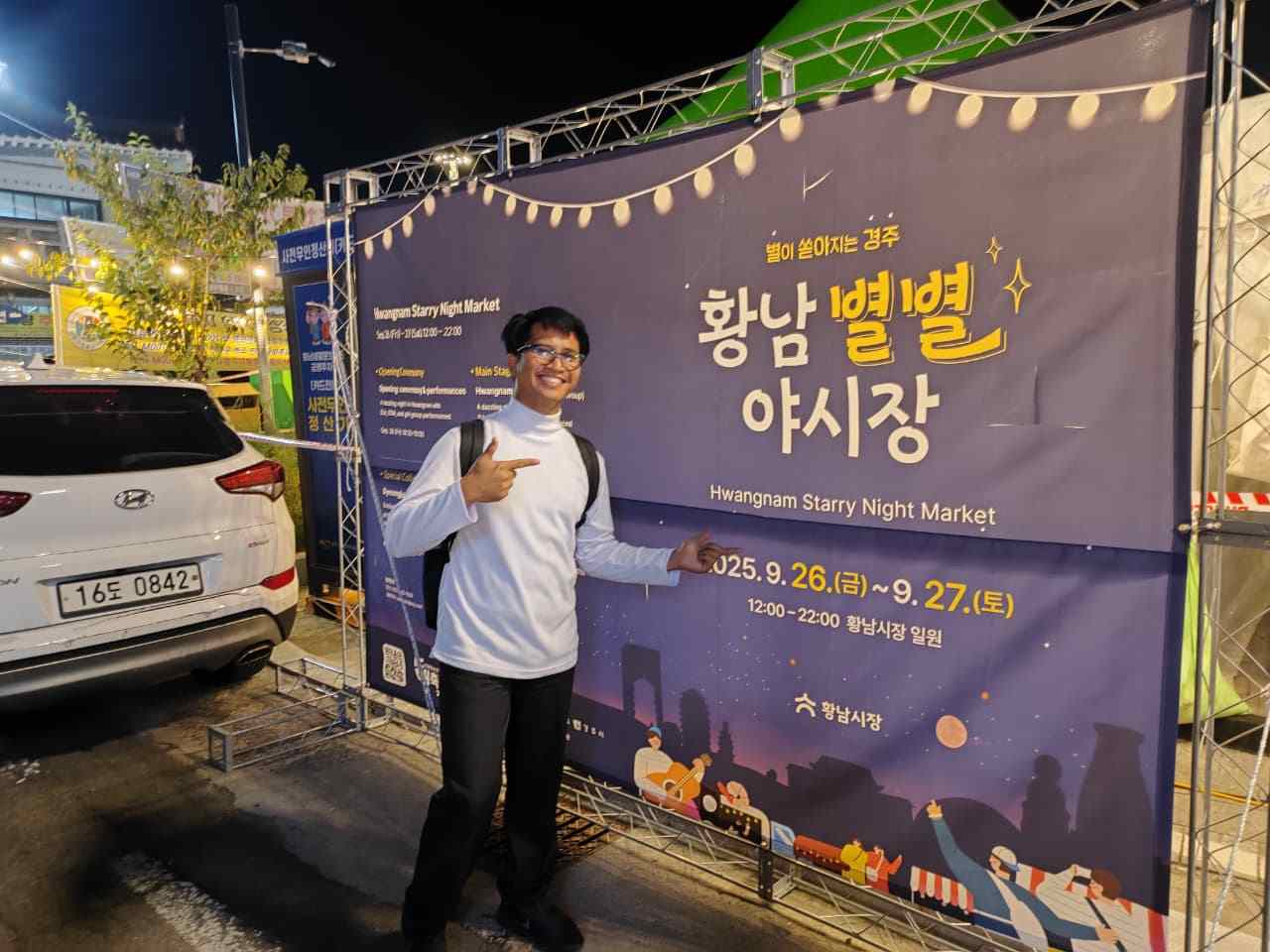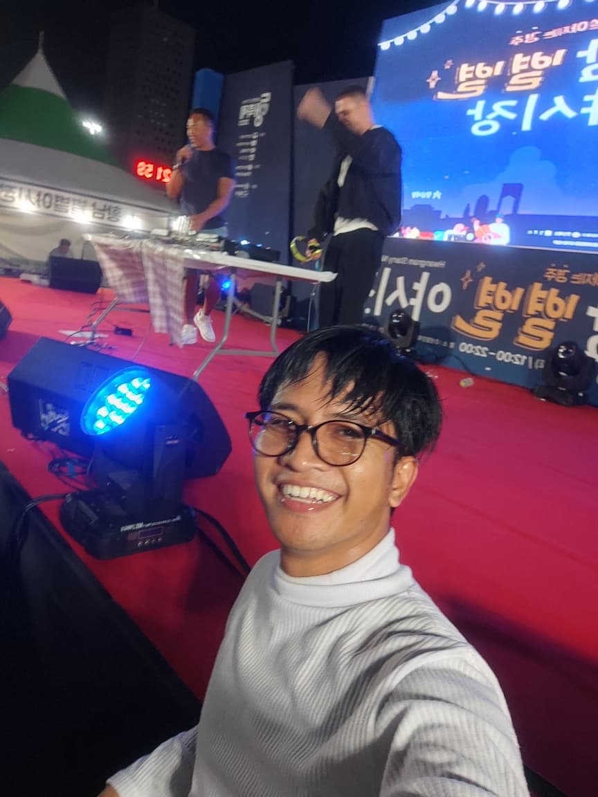 Karena ini hari terakhir sebelum weekend, sore harinya kami punya agenda spesial. Sekitar pukul 6 sore, mentor teacher kami, Mrs. Jiong, menjemput bersama teman-teman dari Malaysia. Kami diajak ke Gyeongju untuk menikmati suasana malam. Ada banyak event menarik: pertunjukan musik, penampilan band, sampai musik elektronik modern.