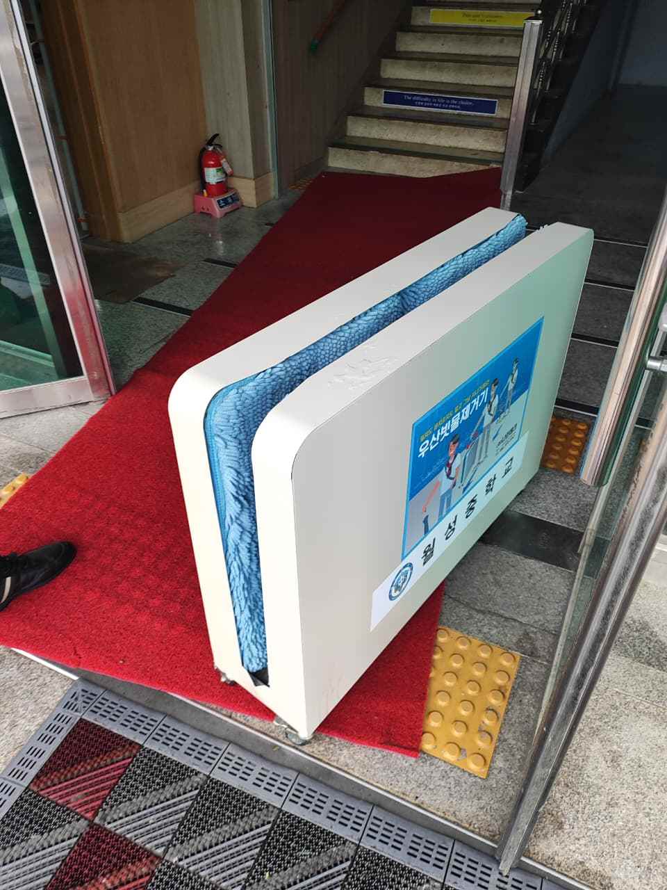 Ketika hujan, ada aturan khusus di sekolah ini. Disediakan karpet merah di pintu masuk dengan himbauan agar siswa membersihkan dan mengeringkan alas kaki sebelum masuk ruangan. Payung juga harus ditutup di area yang sudah ditentukan. Hal ini membuat lantai sekolah tetap bersih dan nyaman. Saya kagum, karena budaya tertib ini sudah tertanam kuat dalam keseharian mereka. Inilah salah satu wujud attitude yang jadi bagian dari Attitude Integrity Knowledge (AIK).