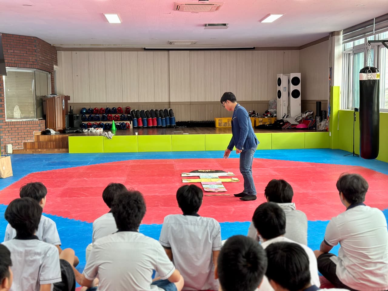 seonsaengnim Yang lebih penting lagi, anak-anak di sini dibiasakan bertanggung jawab terhadap fasilitas. Setelah menggunakan ruangan, mereka merapikan kembali semua peralatan, mematikan AC atau lampu, dan memastikan tidak ada yang terbuang percuma. Tentu, guru atau seonsaengnim (선생님) selalu mendampingi, memberi arahan, dan memastikan ruangan terkunci dengan aman setelah selesai digunakan. Jadi, budaya hemat energi dan menjaga fasilitas benar-benar ditanamkan sejak dini.